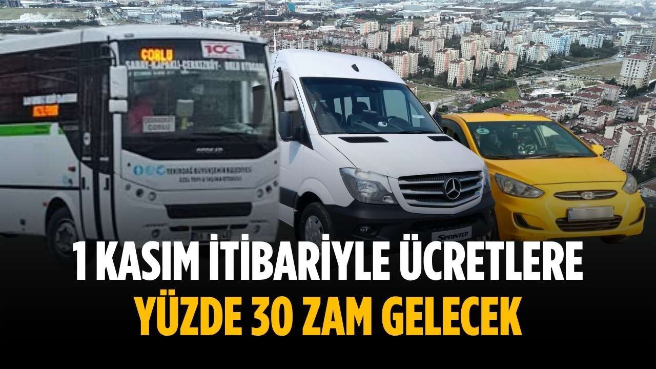 Araçların bakım masrafı ve diğer giderler dolayısıyla zammın kaçınılmaz hale geldiğini söyleyen Başkan As, “Tekirdağ Büyükşehir Belediyesi’nin 8 Ekim Çarşamba günü yapmış olduğu meclis toplantısında toplu taşıma, taksi ve personel servis araçlarına 1 Kasım 2025 tarihinden itibaren geçerli olmak üzere yüzde 30 zam yapıldı.