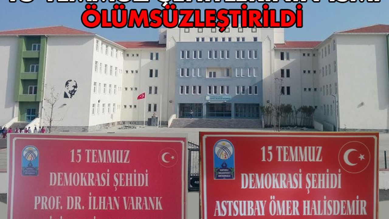 Bizlerde Eğitimin ve Bilimin neferleri olarak aynı kararlı duruşu sergilemek, Öğrencilerimizde Vatan ve Demokrasi Bilincinin Yerleşmesini, Birlik Beraberlik ve Kardeşlik Duygularının Özümsenmesi adına Hayırsever vatandaşlarımızın Katkılarıyla Okul Aile Birliğimiz tarafından yaptırılan Konferans Salonumuza, Fen Bilimleri Laboratuvarımıza, Resim Atölyemize 15 Temmuz Demokrasi Mücadelesinde Şehit Olan Kahraman vatandaşlarımızın isimlerini veriyoruz.