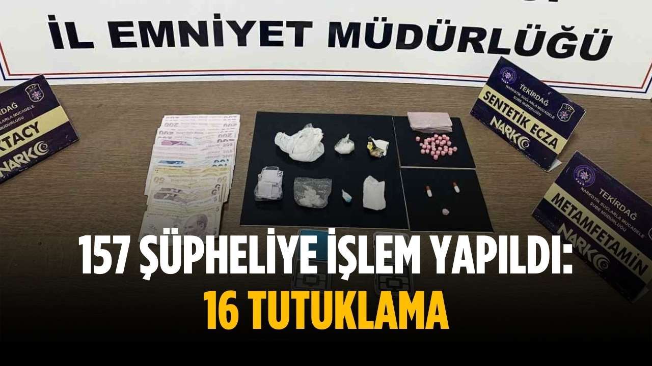Tekirdağ İl Emniyet Müdürlüğü Narkotik Suçlarla Mücadele ekipleri, 19-26 Ocak 2026 tarihleri arasında il genelinde NARVAS ihbarları doğrultusunda kapsamlı çalışmalar gerçekleştirdi. Bu süreçte 11 ilçenin 62 mahallesinde toplam 144 uygulama yapıldı. Uygulamalarda yasaklı madde kullanmak veya bulundurmak suçundan 134 kişi, yasaklı madde ticareti suçundan ise 23 kişi olmak üzere toplam 157 şüpheliye adli işlem uygulandı.