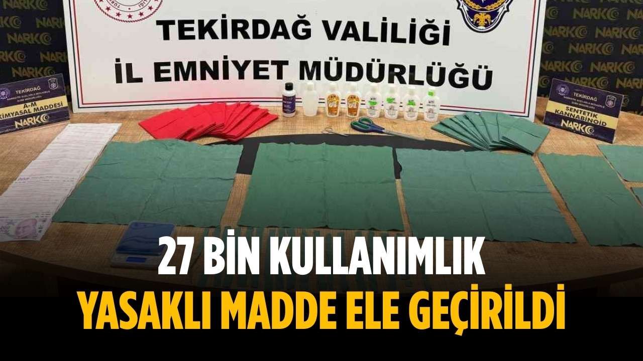 Edinilen bilgilere göre, Tekirdağ İl Emniyet Müdürlüğü ekipleri, Çerkezköy Yıldırım Beyazıt Mahallesi’nde yasaklı madde satıcılarına yönelik operasyon gerçekleştirdi. Operasyonda 27 bin kullanımlık sentetik yasaklı madde emdirilmiş materyal, 1 hassas terazi ile 42 bin 200 TL suç geliri ele geçirildi.