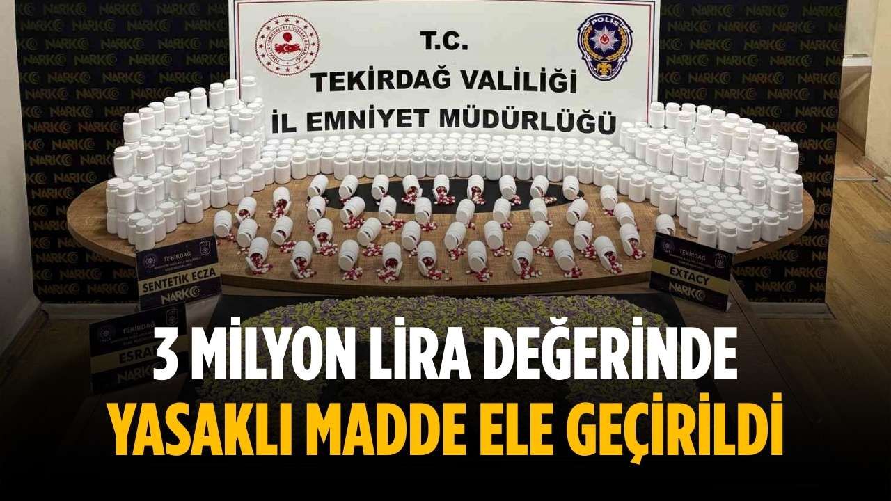 Adreste yapılan aramalarda piyasa değeri yaklaşık 3 milyon TL olan 26 bin 730 adet sentetik ecza ile 253 gram yasaklı madde ele geçirildi.
