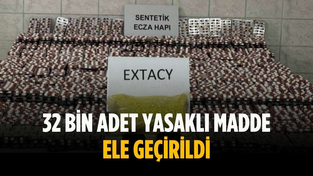 Araç içerisinde ve şüphelilerin üzerlerinde yapılan aramalarda toplam 32 bin adet yasaklı madde ve suçtan elde edildiği değerlendirilen 545 TL para ile 2 adet cep telefonu ele geçirildi.