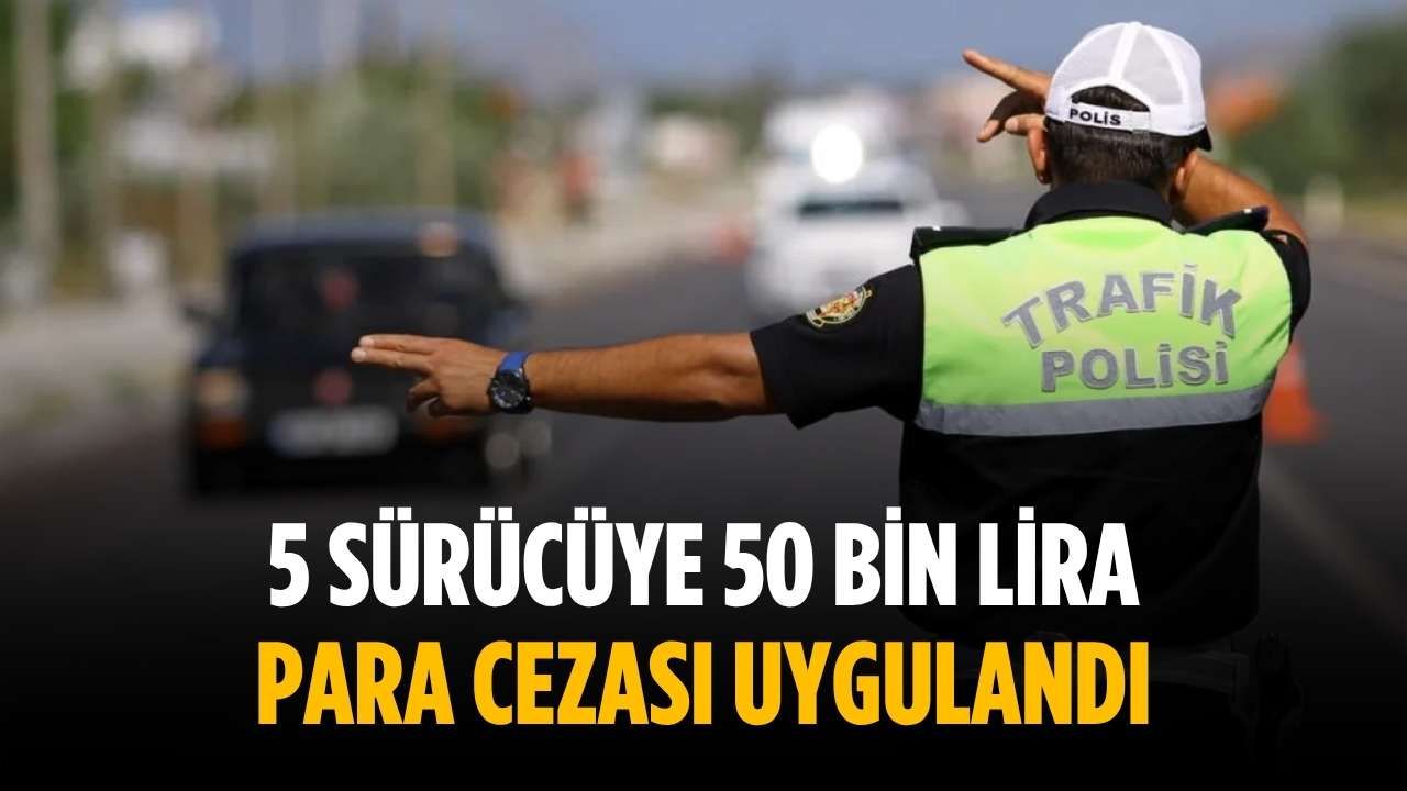 Tekirdağ merkez Süleymanpaşa ilçesinde kurallara uymadığı tespit edilen 5 araca, çeşitli maddelerden toplam 50 bin 512 TL idari para cezası kesildi. Uygulamada herhangi bir olumsuzluk yaşanmadığı öğrenildi.