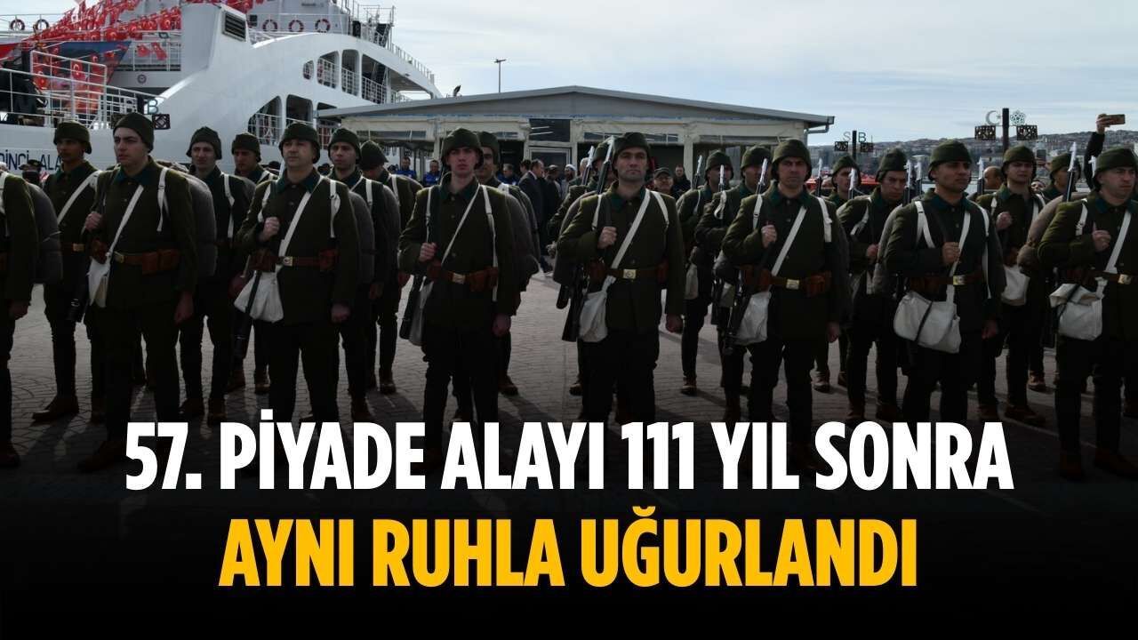 Program, saat 14.30’da Rumeli İskelesi’nde düzenlenen temsili uğurlama töreniyle devam etti. Dönemin asker kıyafetleri giydirilen Mehmetçikler, "Elli Yedinci Alay" isimli feribota binerek dualar eşliğinde limandan ayrıldı. Çanakkale’ye doğru sembolik olarak hareket eden feribot, 57. Alay’ın 111 yıl önceki yolculuğunu bir kez daha hafızalara taşıdı. Süleymanpaşa Su Ürünleri Kooperatifi üyesi balıkçılar da tekneleriyle denizde kortej oluşturarak uğurlamaya eşlik etti.