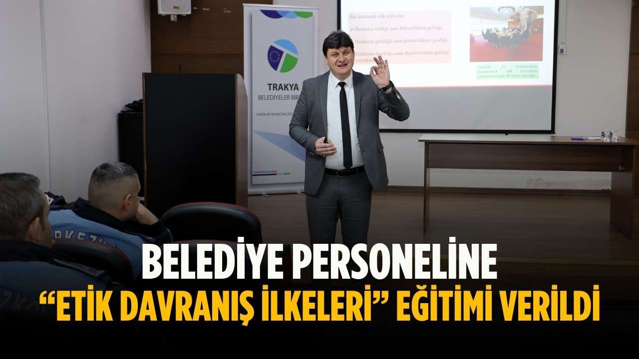 Çerkezköy Belediyesi Hizmet Binası Çok Amaçlı Salonu’nda 2 Aralık Salı günü İnsan Kaynakları Müdürlüğü tarafından düzenlenen eğitimde, Tekirdağ Büyükşehir Belediyesi Eğitim Şube Müdürü Erkan Ilgaz tarafından “Kamu görevlileri etik davranış ilkeleri ile başvuru usul ve esaslar” hakkında bilgiler verildi.