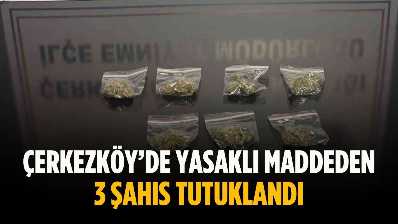 Çerkezköy Emniyet Müdürlüğü Narkotik Suçlarla Mücadele Şubesi ekiplerinin denetim ve operasyonlarda 10,6 gram eroin, 126 adet galara hap, 7 adet satışa hazır halde skunk, 3 adet lyrica hap, 20 adet farklı boyutlarda peçeteye emdirilmiş A-M maddesi, 5,72 gram esrar ve 0,5 gram taş kokain bulundu.