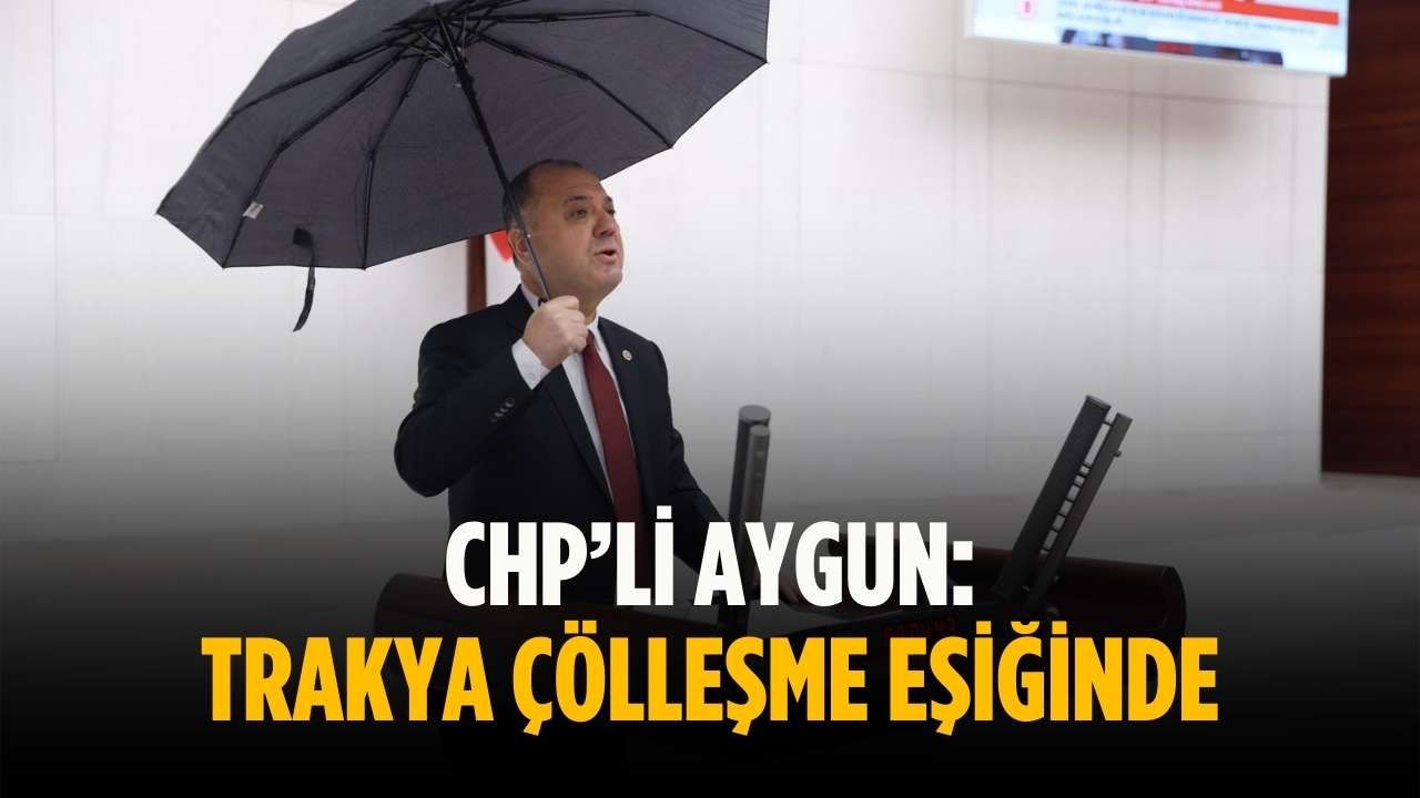 Aygun; TAGEM'in verilerine göre ülkemizde 2080 yılı senaryolarında sıcaklık artışı ve yağış azalmasından dolayı buğday, mısır, çeltik, pamuk gibi temel ürünlerde yüzde 5 ila yüzde 20'lik verim kayıplarının beklendiğini bunun Trakya’da zirveye çıkacağını belirterek, “Trakya'da buğdayda yüzde 76, ayçiçeğinde yüzde 66 gibi kritik düşüş bekleniyor. Peki biz ürün deseni için ne yapıyoruz? Hiç bir şey” diye tepki gösterdi.