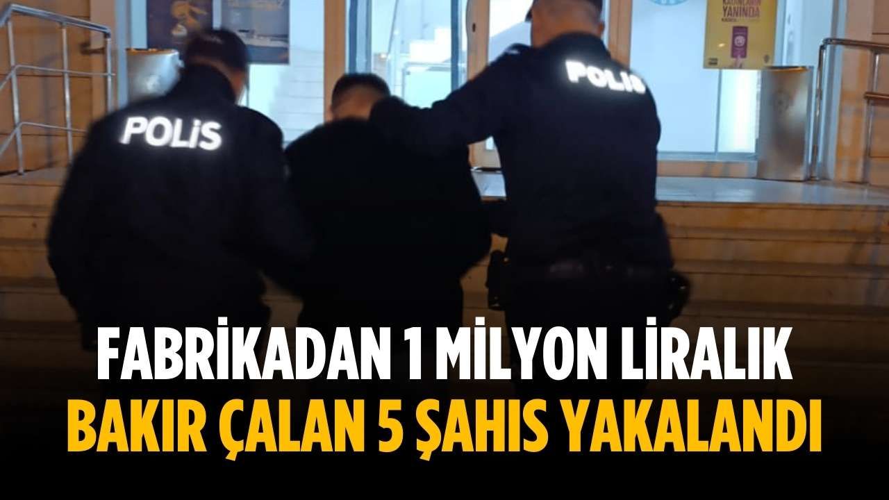Tekirdağ İl Emniyet Müdürlüğü ekipleri tarafından Muratlı’da bulunandır fabrikanın bahçesinden yaklaşık 1 milyon lira değerinde bakır enerji kablolarının çalınması ile ilgili yapılan çalışmalarda 5 şahıs yakalandı.