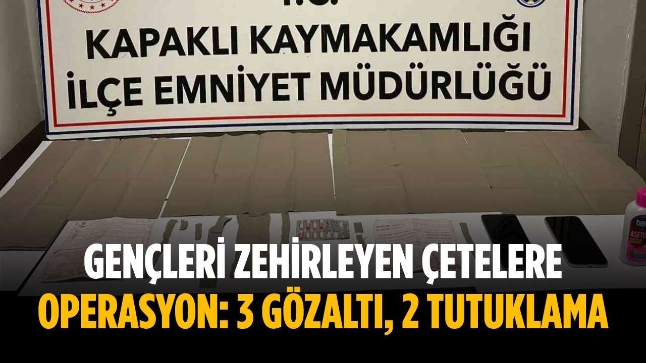 Tekirdağ Emniyet Müdürlüğü ekipleri, Kapaklı’da yasaklı madde pazarlayan çeteye yönelik yaptığı operasyonda 3 şahsı yakaladı. Şahısların üzerinde ve iş yerlerinde yapılan aramalarda 1296 kullanımlık peçete, 2 plastik kutu içinde sıvı aseton, 8 adet kapsül sentetik ecza, 5 adet 40x40 cm basıma hazır peçete ve suçtan elde edildiği değerlendirilen 13 bin 125 TL ele geçirildi.