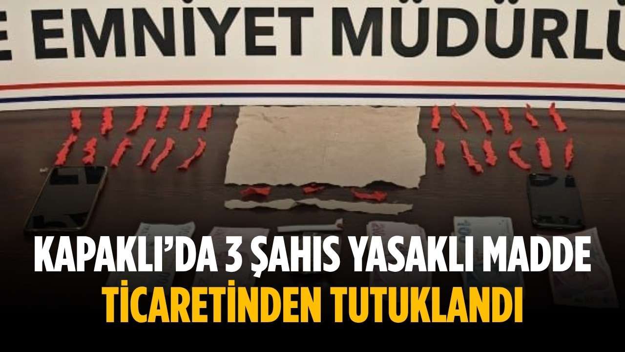 Kapaklı İlçe Emniyet Müdürlüğü ekipleri, şüphelendikleri O.A., T.T. ve U.T. isimli şahısların üzerinde ve ikametlerinde arama gerçekleştirdi. Yapılan aramalarda; 29 parça halinde 4 bin 100 kullanımlık peçete, 1.39 gram yasaklı madde, 850 TL nakit para, 2 cep telefonu ele geçirildi.