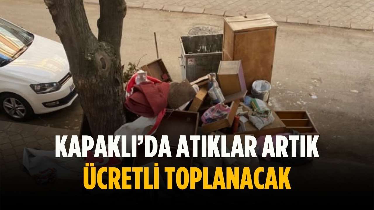 Kapaklı Belediyesi tarafından açıklanan tarifeye göre, moloz atıklarının toplanması çuval başına 40 TL olarak belirlendi. Kullanılmayan ev eşyaları ve benzeri hacimli atıklar için ise 1 metreküplük kamyonla yapılan alımlarda 400 TL, 5 metreküplük kamyonla yapılan alımlarda 1500 TL, 10 metreküplük kamyonla yapılan alımlarda ise 2500 TL ücret uygulanacak.