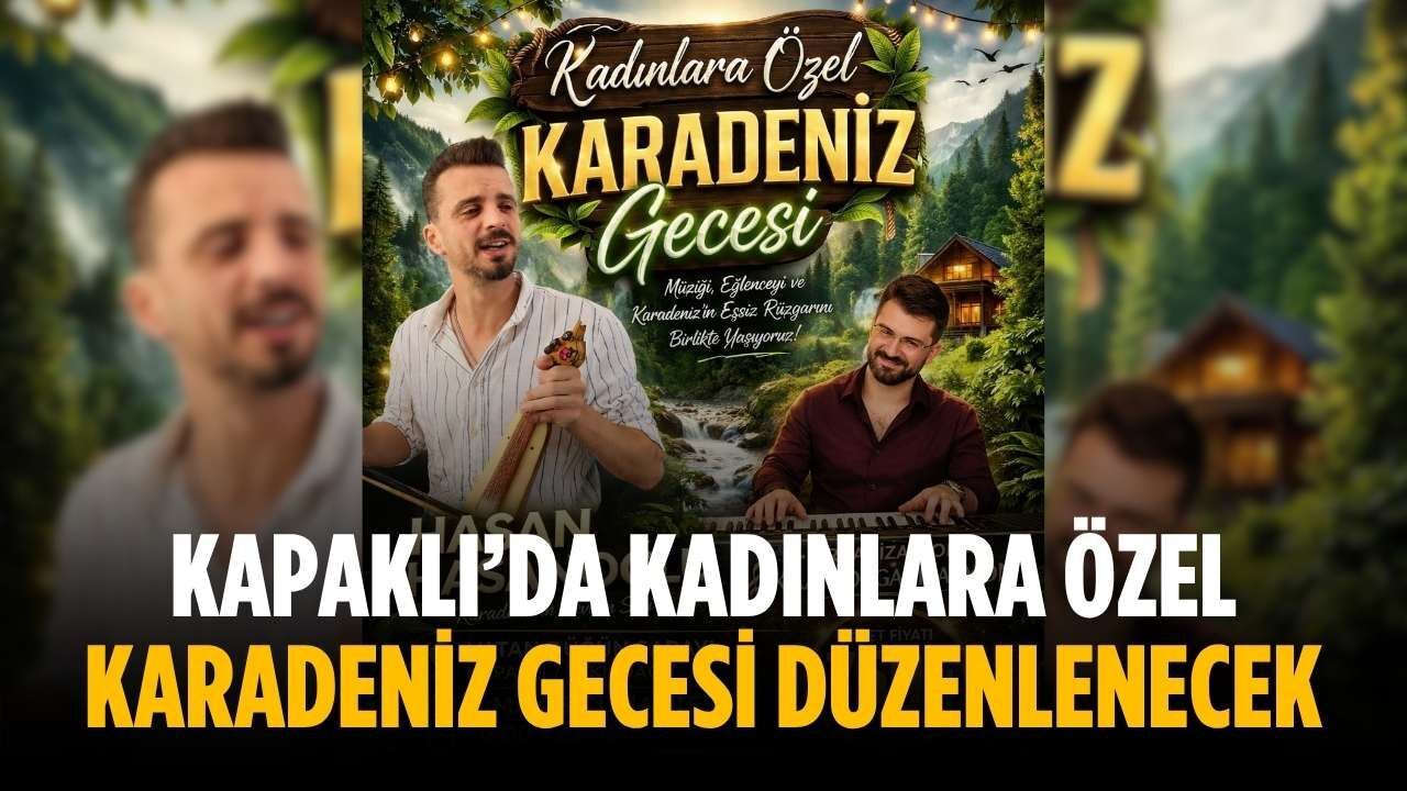 Kapaklı’da kadınlara özel olarak düzenlenecek Karadeniz Gecesi, eğlence dolu anlara sahne olacak. Kaan Organizasyon tarafından organize edilen etkinlikte, Karadeniz müziğinin sevilen sesi Hasan Hasanoğlu sahne alacak.