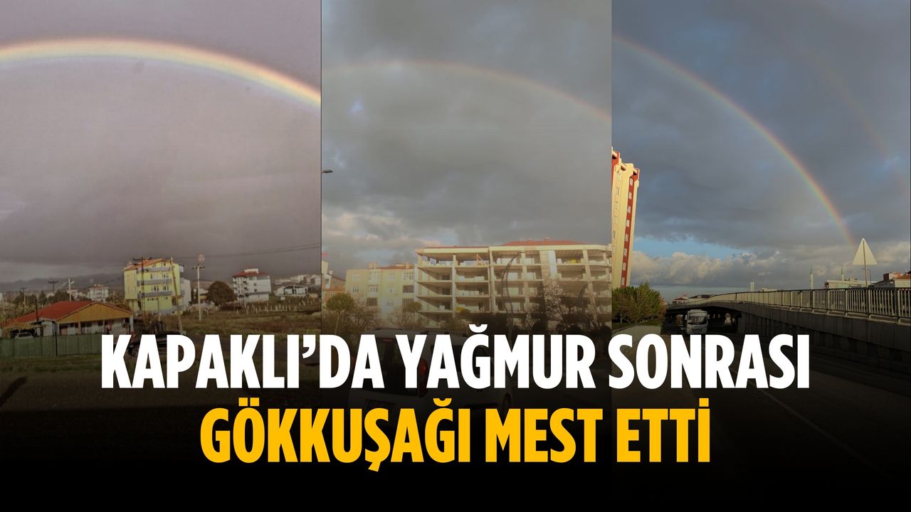 Kapaklı’da yağmurun ardından ortaya çıkan gökkuşağı, ilçe genelinde etkileyici görüntülere sahne oldu. Birçok noktadan net şekilde görülen gökkuşağı, vatandaşlar tarafından cep telefonlarıyla kaydedildi.