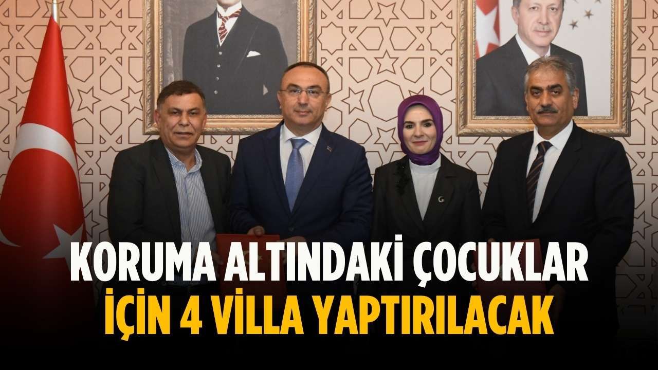 Villaların yaptırılmasına dair protokol, Aile ve Sosyal Hizmetler Bakanı Mahinur Özdemir Göktaş himayelerinde Aile ve Sosyal Hizmetler Müdürü Hüseyin Özdemir ve Morfose Kişişel Bakım ve Kozmetik Ürünleri Şirketi Ortağı Cihangir Karahan tarafından imzalandı.