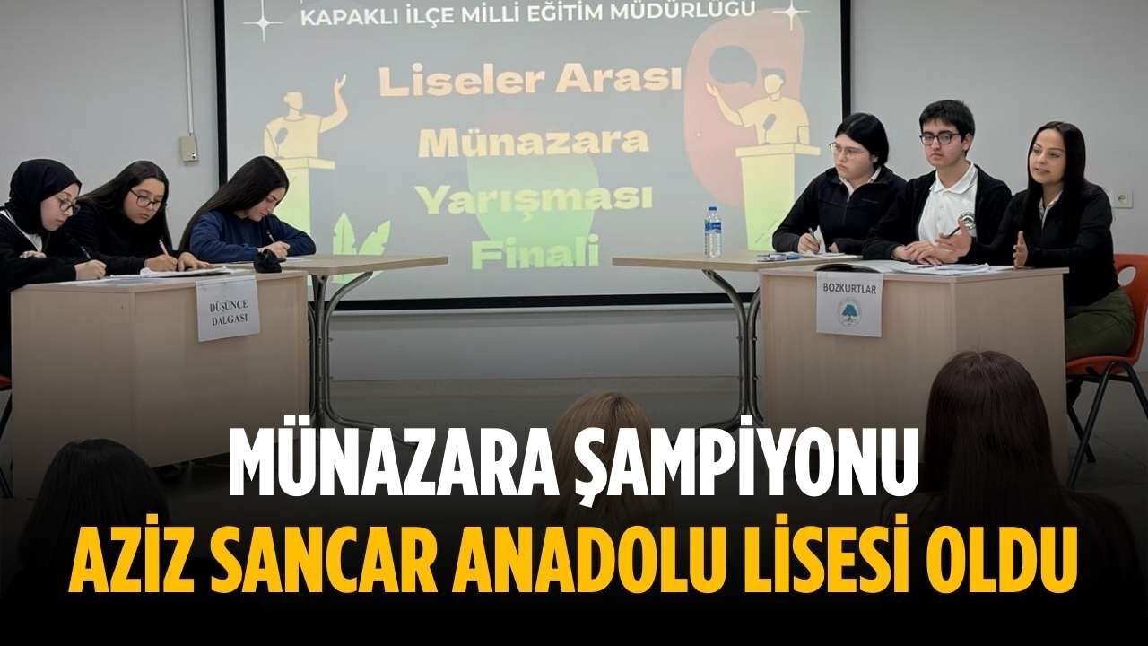 Kapaklı’da düzenlenen liseler arası münazara yarışması, öğrencilerin bilgi, hitabet ve özgüvenlerini sergilediği çekişmeli karşılaşmalara sahne oldu. İlçedeki farklı liselerin katılımıyla gerçekleşen organizasyonda finale kalan okullar Ertuğrul Gazi Anadolu Lisesi ile Aziz Sancar Anadolu Lisesi oldu.