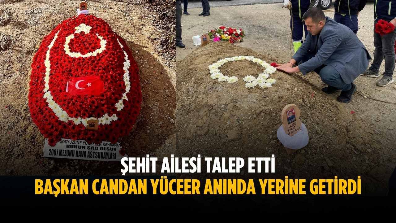 Başkan Yüceer, şehit eşinin bu isteğini aynı gün yerine getirerek gerekli çalışmaları başlattı. 11 Kasım 2025 tarihinde şehit İlker Aykut’un mezarı başına hilal formunda 11 adet zakkum çalısı dikilerek özel bir düzenleme yapıldı. Türk bayrağına atıfla hazırlanan hilal şeklindeki bu anlamlı çalışma, vatandaşların da takdirini topladı.
