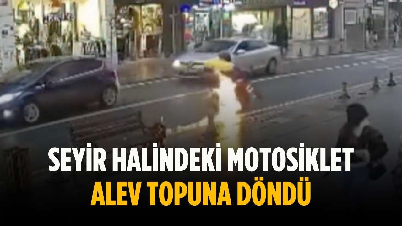 Olay, Çorlu Kemalettin Mahallesi Salih Omurtak Caddesi üzeri Çeşme Durağı yakınlarında meydana geldi. Belediye yönüne seyreden motosiklet bir anda alev topuna döndü. Sürücü ise apar topar motosikletten atlayarak yanmaktan saniyelerle kurtuldu.