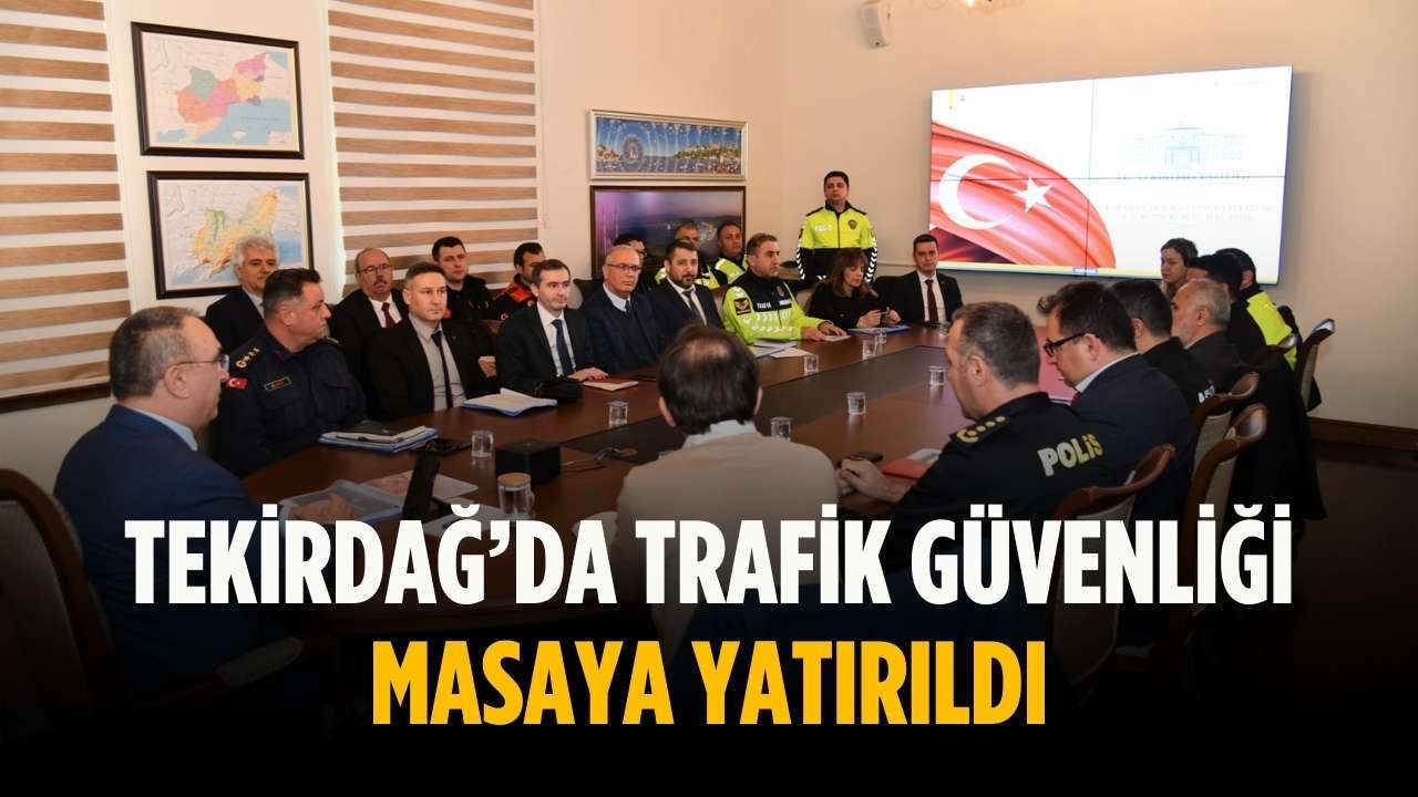 Tekirdağ Valisi Recep Soytürk başkanlığında İl Emniyet Müdürü Ahmet Metin Turanlı, İl Jandarma Komutan V. J. Alb. Kamil Kıspet ve Karayolu Trafik Güvenliği Stratejisi İl Yürütme Kurulu Üyeleri’nin katılımıyla 2024-2027 Trafik Güvenliği Eylem Planı Toplantısı yapıldı.