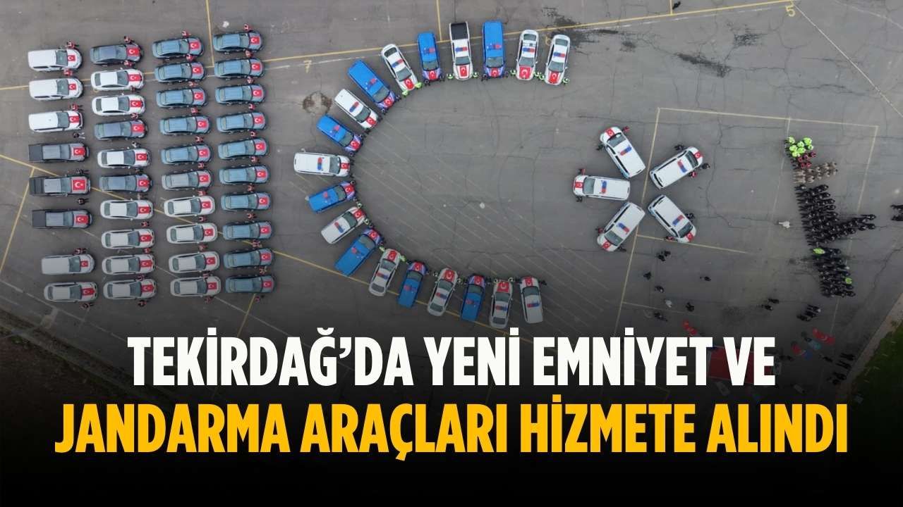 Jandarma, Emniyet ve Sahil Güvenlik teşkilatlarına tahsis edilen 9 bin 200 yeni araçtan Tekirdağ’a gönderilen 41 emniyet aracı ve 23 jandarma aracı için Sahil Dolgu Alanı’nda teslim töreni düzenlendi. Cumhurbaşkanı Recep Tayyip Erdoğan’ın İstanbul’da katıldığı ana teslim töreninin ardından Tekirdağ’a yönlendirilen araçlar, şehirde görev yapacak birimlere kazandırıldı.