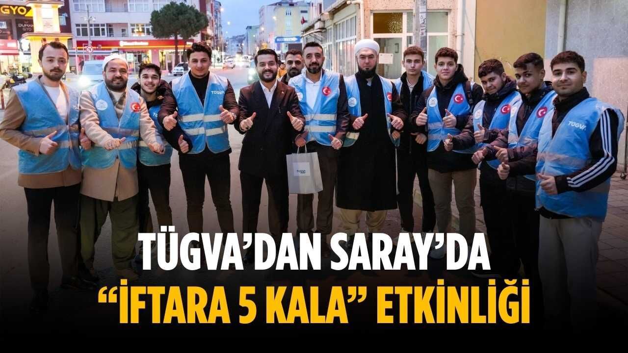Türkiye Gençlik Vakfı (TÜGVA) Tekirdağ İl Başkanı Mustafa Taşkıran, Saray İlçe Temsilciliği görevine yeni getirilen Mehmet Şahin ve TÜGVA gönüllüleri ile birlikte Saray’da “İftara 5 Kala” programı gerçekleştirdi.