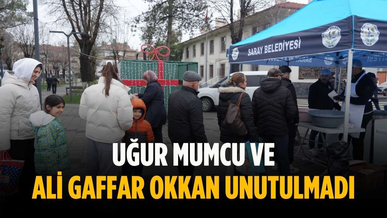 Saray Belediyesi, Gazeteci Uğur Mumcu ile Emniyet Müdürü Ali Gaffar Okkan’ı anmak amacıyla anlamlı bir etkinliğe imza attı. Belediye binası önünde düzenlenen programda, iki ismin hayrına vatandaşlara lokma ikramında bulunuldu.