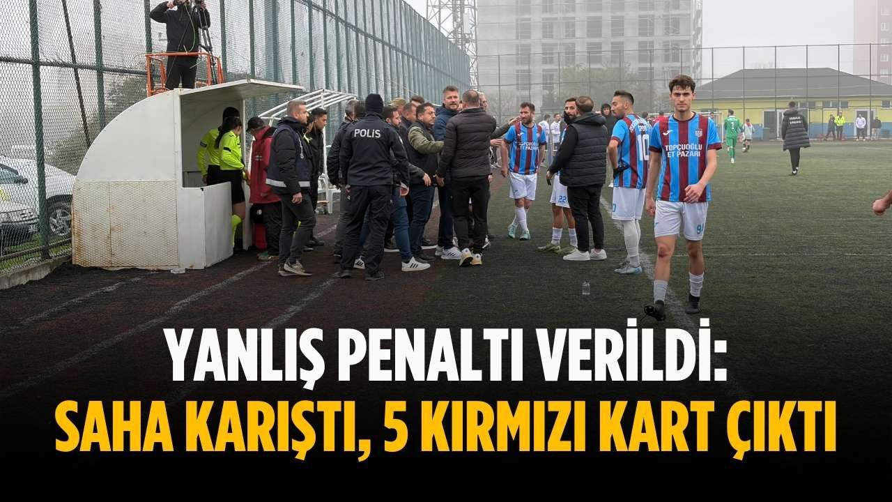 Hatalı penaltı kararının üstüne bir de çıkan kırmızı kartı gören Karadenizspor’lu Mehmet Çağlar Çavdar’ın hakeme teması sonucu hakem kafasını başka bir oyuncuya çarptı.
